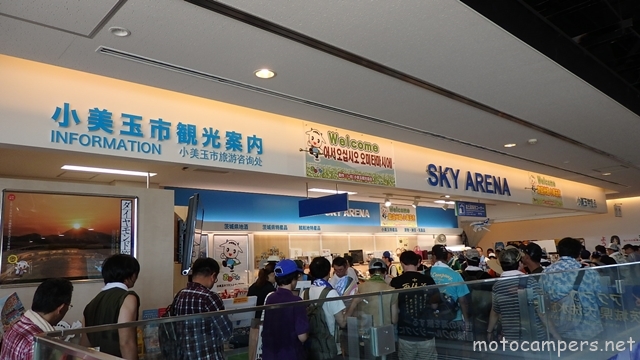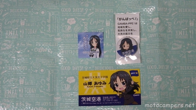 名刺・缶バッチ交換会場と言うのは、「茨城空港ガルパン応援計画」の企画のひとつで、空港内または空港近くにある「空のえき そ・ら・ら」で1000円以上の買い物をしてレシートを交換会場に持って行くと、オリジナル「あゆみちゃん缶バッジ」がもらえちゃうというもの。