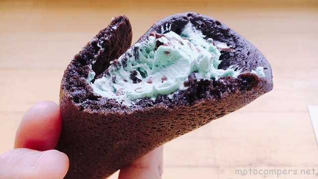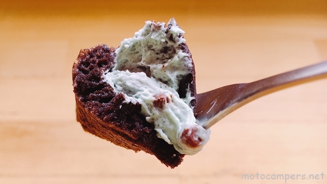 ビターなココア生地が、ミントホイップの清涼感をうまく調和させていますね。