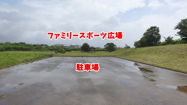 その正面がファミリースポーツ広場(テントサイト)になっています。