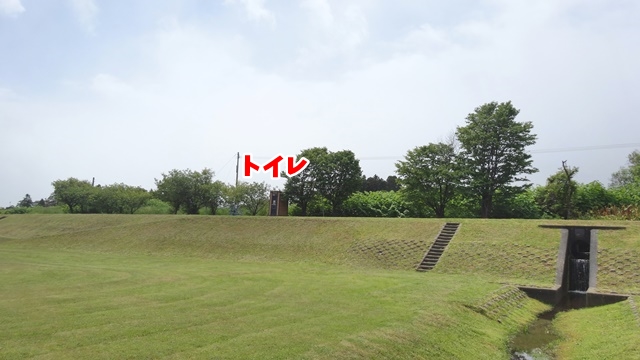 トイレは、テントサイトから坂道を登った堤防上の道路沿いに設置されています。
