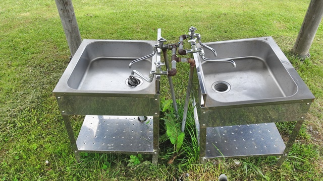 屋根の下には、ステンレス製のシンクが2つ置いてあります。