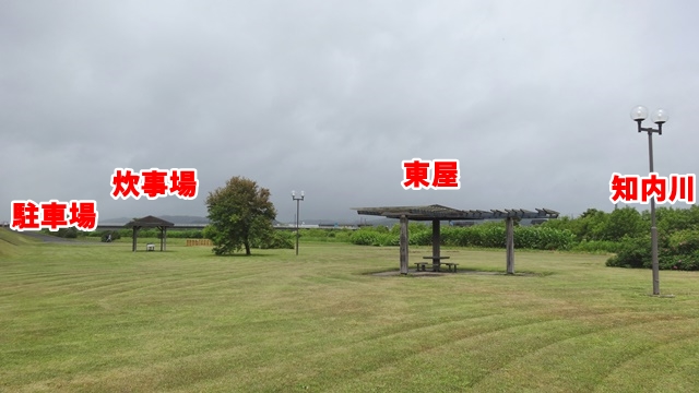 炊事場と東屋の近くには、木があるので、その周辺が利便性の面でもベストな場所かもしれません。