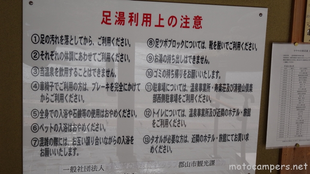 旅先やツーリングの途中でも気軽に入れる足湯、地元の銘菓なんかを買ってきて、ちょっと休憩してみませんか。