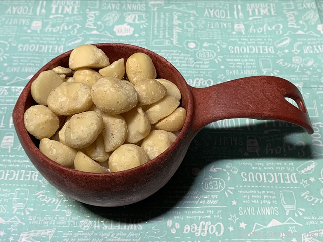 マカダミアナッツは、ナッツ類の中でも脂質が多いので、なんと、チョコレートそのものよりも、中に入ったマカダミアナッツのほうが脂質が多いんです。