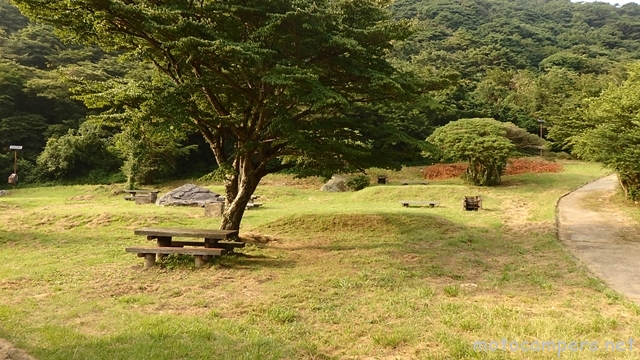 キャンプサイトは開放的な芝生のフリーサイトで、ところどころに木陰があったり、テーブルやイスが設置されています。