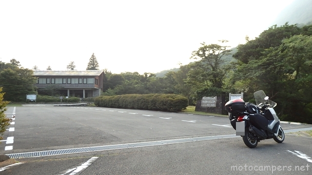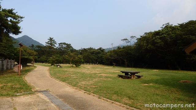 ボクの場合は、ほかに利用客がいなかったので、道路にバイクを止めてその隣にテントを張るという横着ができました(笑)