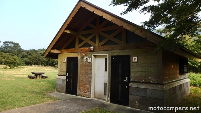 田代原キャンプ場についてまず目につくのが、写真左の建物です。