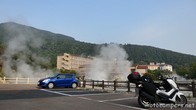 キャンプ場から雲仙温泉の中心地まで距離9.8km、所要時間約15分です。