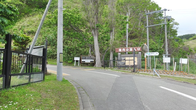市街地を通る道道254号線から公園のある丘陵地に向かって西進すると、稚内公園の入口が見えてきます。