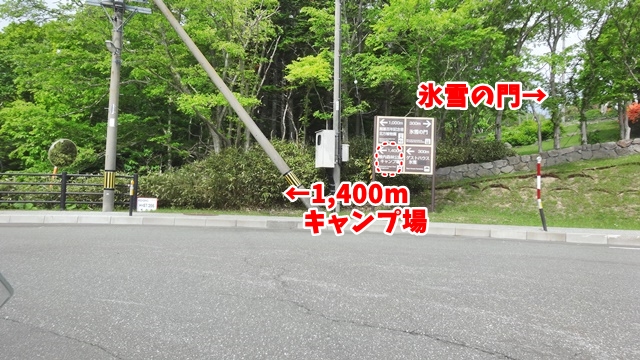 ここを左折するように道なりに進むと、約1.4kmでキャンプ場。