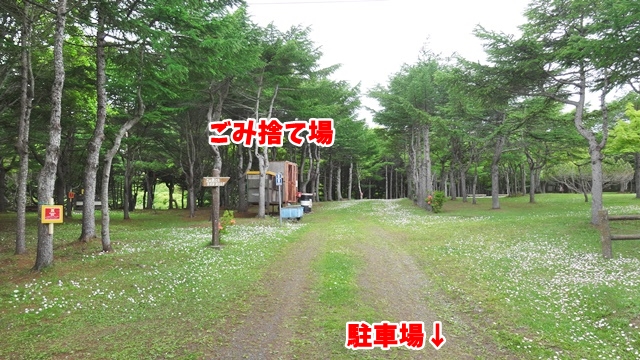 もちろん、テントサイト内への車両の乗り入れは禁止。
