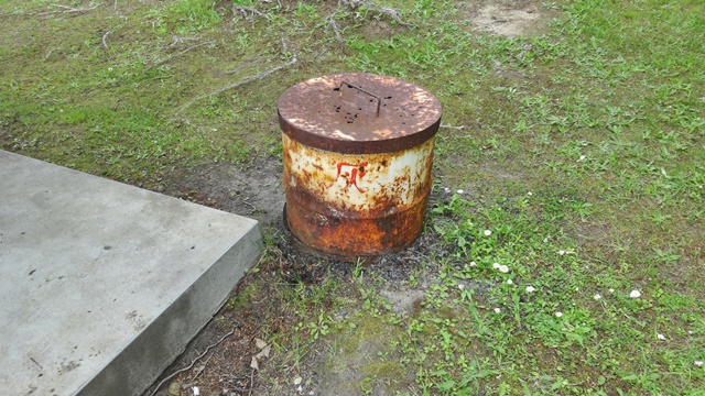 一般ごみは、こちらの蓋つきのドラム缶の中へ。
