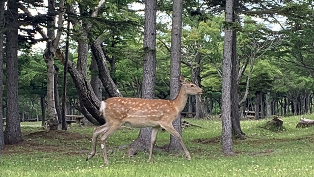 ちなみに、公園内をエゾシカが当たり前のように歩いていました。