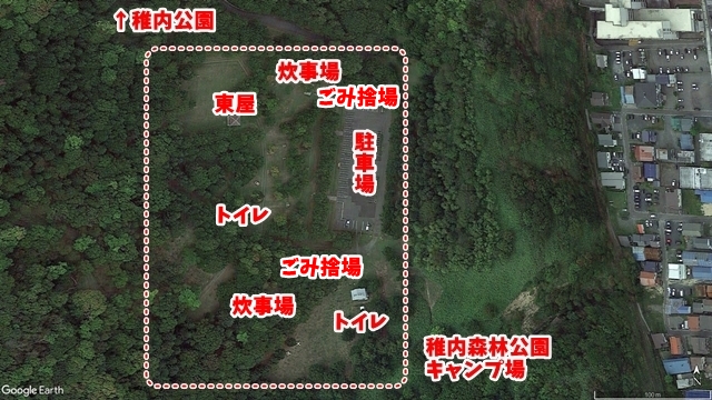 稚内森林公園をGoogleEarthで上空から見ると、こんな感じ。